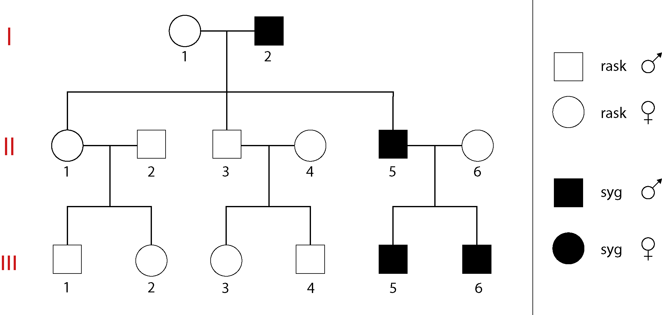1. Analysér stamtræet på figur 3.1 og angiv mulige genotyper for personerne II-6 og III-5.