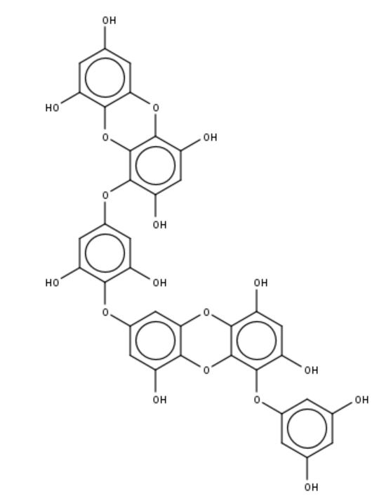 Phlorotanninernes struktur ligner hinanden. Et eksempel på en phlorotannin er dieckol, hvis strukturformel er vist i figur 1.3.