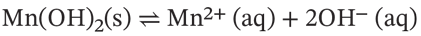 | c) | Beregn den aktuelle stofmængdekoncentration af henholdsvis Mn2+ og OH- i den mættede opløsning. |