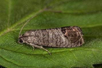 Figur 3.1 a) Larve af æblevikler b) Voksen æblevikler
