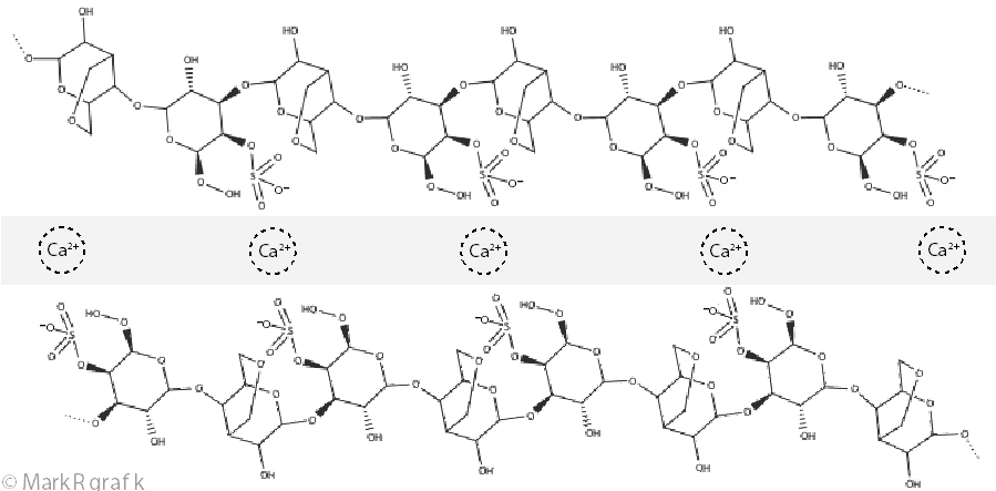 Argumentér for, at calciumioner sammenbinder carrageenankæder. Inddrag figur 4.2.