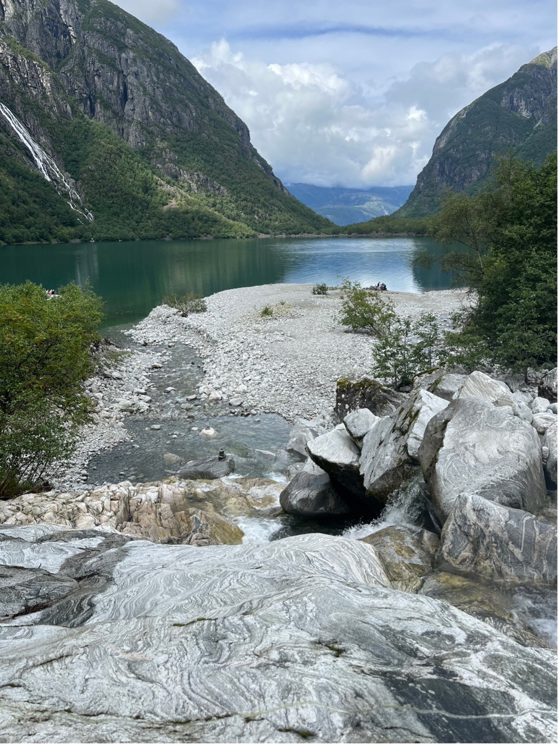 På figur 1 ses et foto fra området Folgefonna i Norge, hvor den dominerende bjergart i området ses i forgrunden.